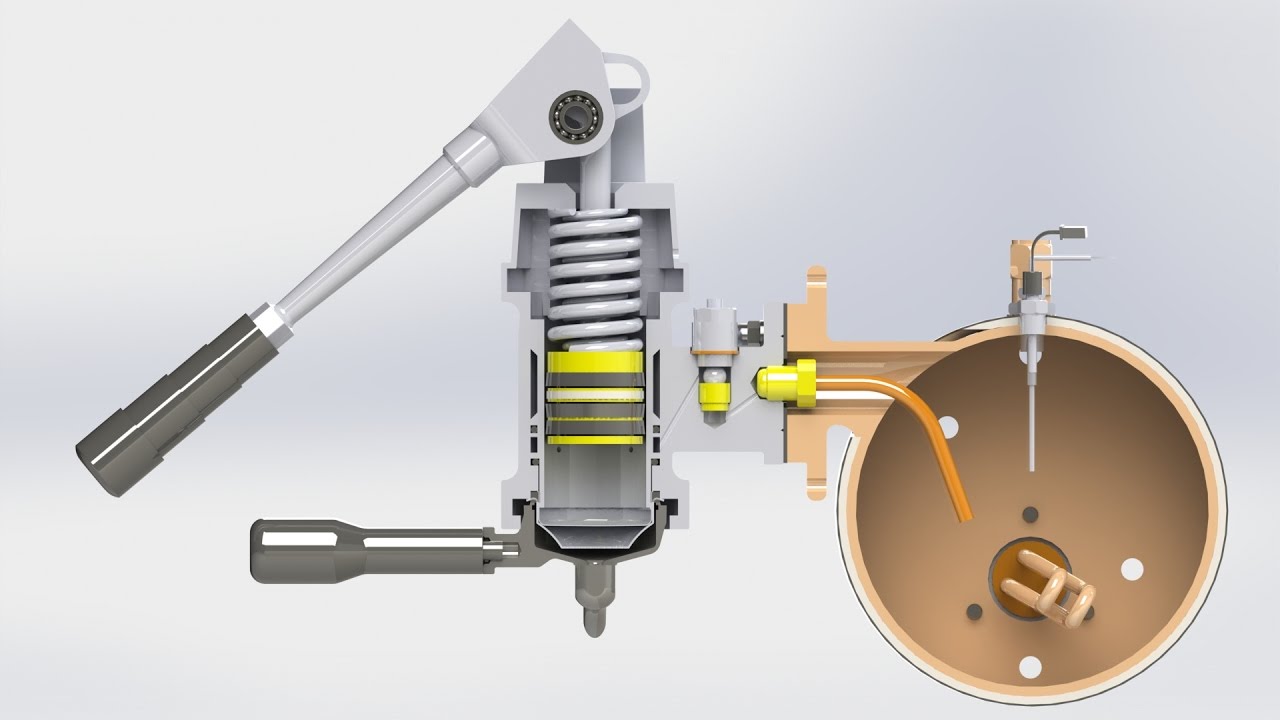 Dřívější stroje fungovaly tak je znázorněno na obrázcích, tzn. po stlačení páky a smrštění pružiny se komora pod pružinou zaplnila vodou přímo z boileru díky tlaku páry. To ale znamenalo příliš vysokou teplotu vody (nad 100°C) , která pak kávové oleje v páce kávovaru spíše spálila.